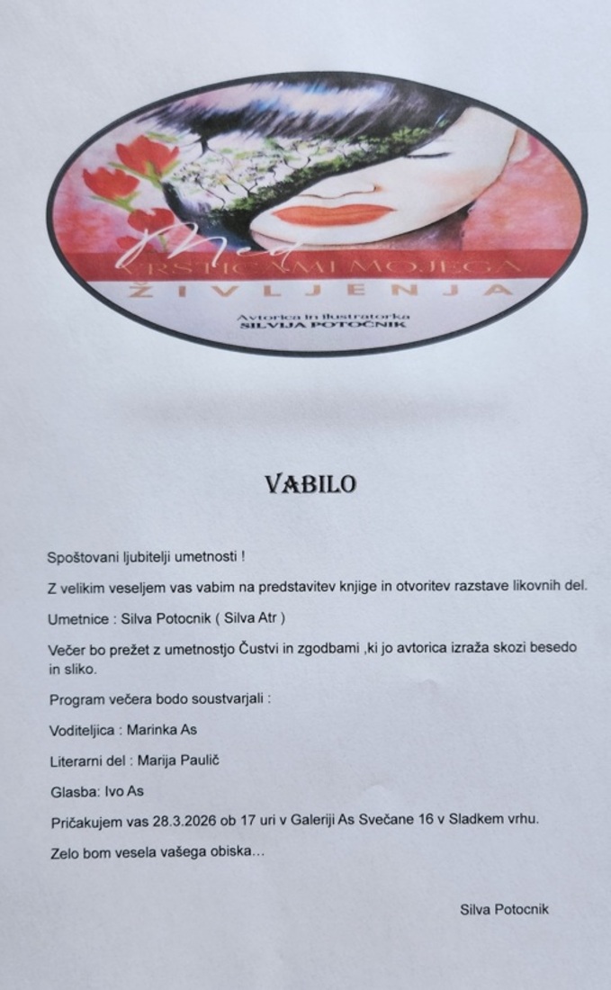 PREDSTAVITEV KNJIGE IN OTVORITEV RAZSTAVE LIKOVNIH DEL SILVE POTOČNIK