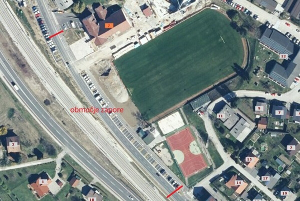 Območje zapore je razvidno na priloženi skici.