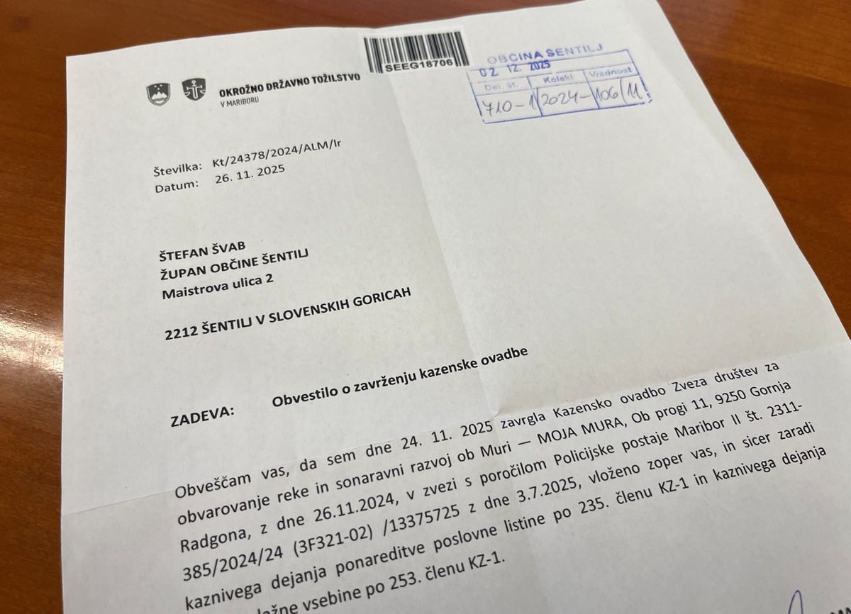 Z Okrožnega državnega tožilstva v Mariboru smo prejeli obvestilo, da je kazenska ovadba, ki jo je zoper župana Občine Šentilj mag. Štefana Žvaba vložila Zveza društev za obvarovanje reke in sonaravni razvoj ob Muri – Moja Mura, bila zavržena.